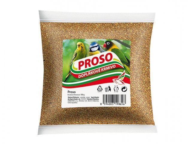 Proso krmné je vhodné jako doplňkové krmivo pro drobné ptactvo. Balení: 500 g.