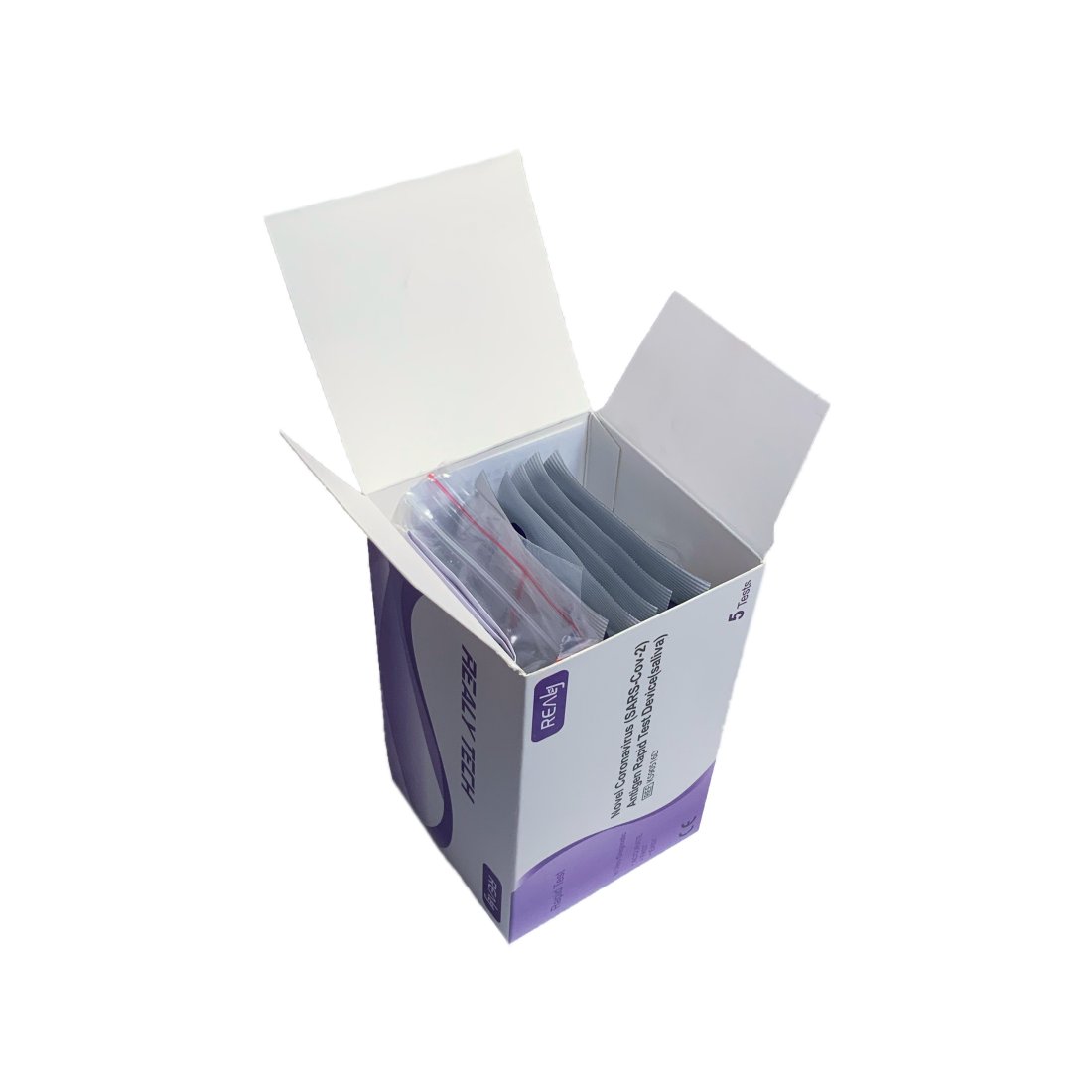 Novel Coronavirus (SARS-Cov-2) Antigén Rapid Test Device (sliny) je imunochromatografický membránový test, ktorý používa vysoko citlivé monoklonálne protilátky proti novému koronavírusu. Testovací prúžok sa skladá z nasledujúcich troch častí, menovite vzorkovej podložky, reagenčnej podložky a reakčnej membrána. Reagenčná membrána obsahuje koloidné zlato konjugované s monoklonálnymi protilátkami proti novému koronaviru; reakčná membrána obsahuje sekundárne protilátky pre nový koronavírus a polyklonálne protilátky proti globulínu, ktoré sú vopred imobilizované na membráne.