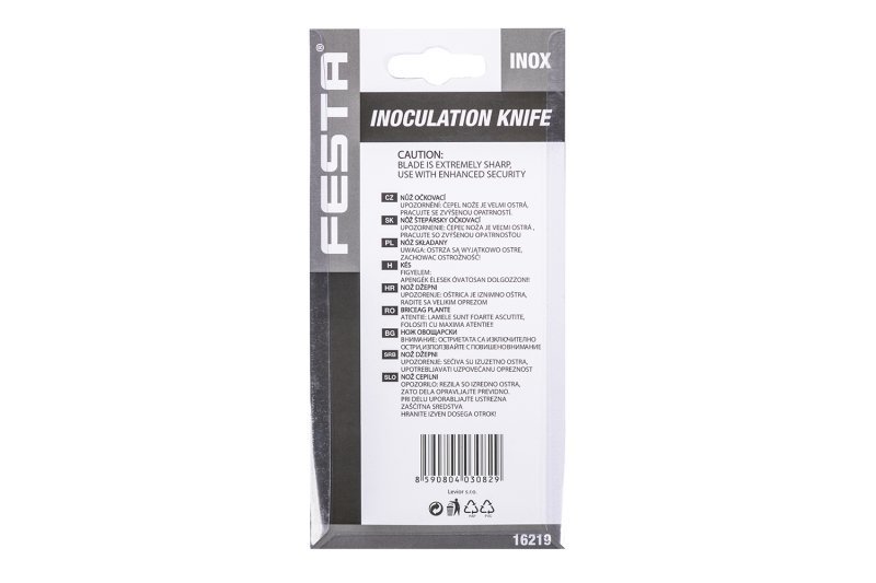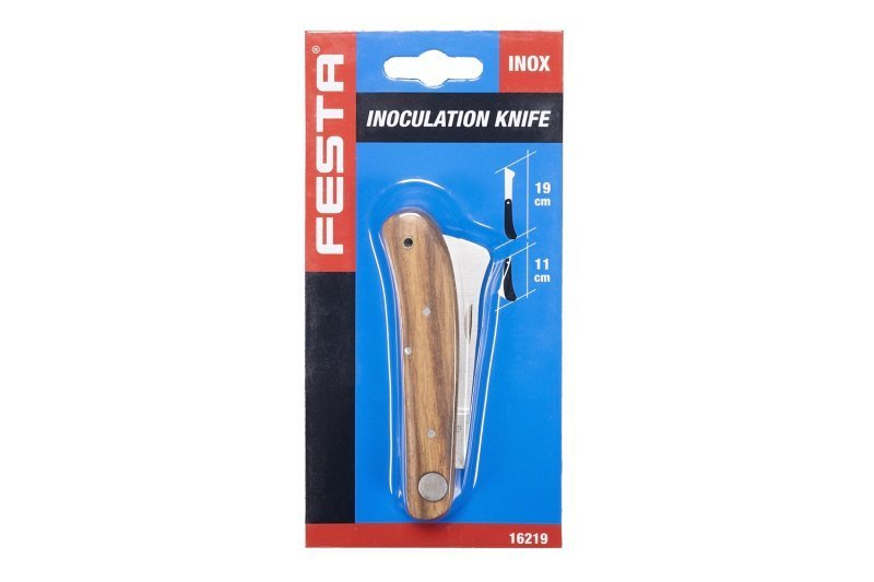 Očkovací zavírací nůž, silná nerezová čepel, dřevěná rukojeť s kvalitním nýtovaním, k očkování - řezání a úpravě dřevin a rostlin, délka čepele 110mm, blistr.
