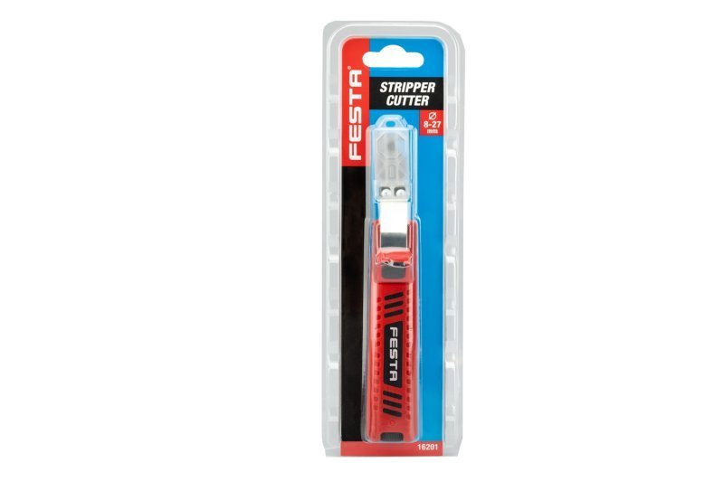 Speciální nůž pro odizolovávání vodičů, otáčecí nůž pro kruhové a podélné řezy kabelů o průměro 8-27 mm, nastavitelný držák kabelů se automaticky přizpůsobí danému kabelu, plášt rozřízneme kruhovým otočením a tažením nože po délce kabelu, blistr.