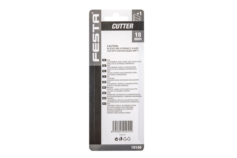 Odlamovací nůž FESTA 18mm, kvalitní materiály, kovová lišta, odolná šroubková aretace, blistr.