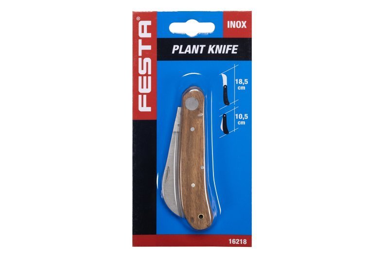 Nůž roubovacíRoubovací zavírací nůž, silná nerová čepel, dřevěná rukojeť s kvalitním nýtovaním, k roubování, řezání a úpravě dřevin a rostlin, délka čepele 105mm, blistr.