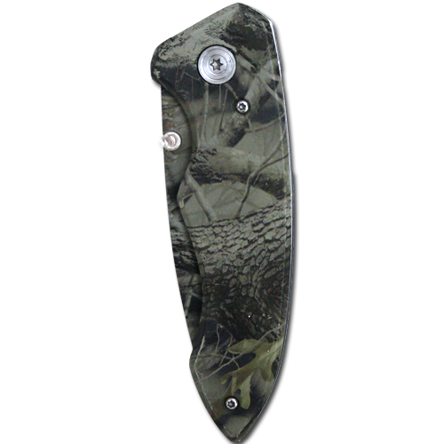 Nôž zatvárací, lovecký s klipom, dĺžka 19cm, čepeľ 8 cm. S potlačou maskovaní z oboch strán noža.