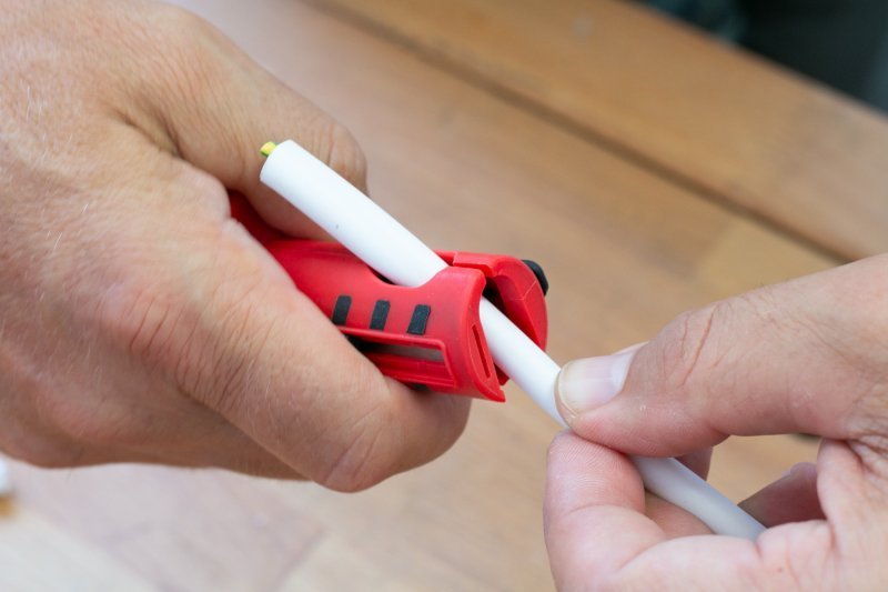 otevírací konstrukve odizolovávače s různými druhy čepelí pro široké spektrum odizolovávání kabelů a vodičů