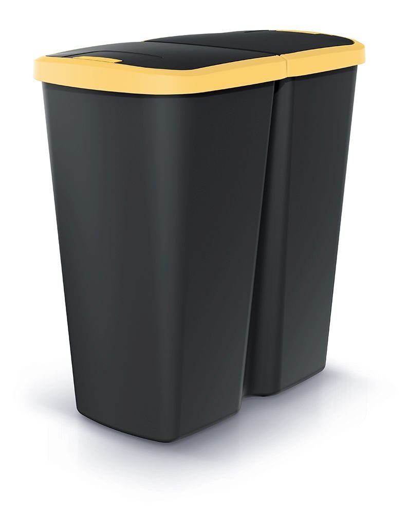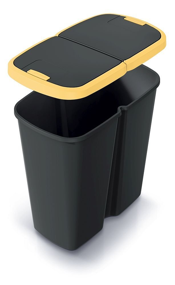 Odpadkový koš COMPACTA Q DUO -objem: 45 l, barva: černá se žlutým víkem
