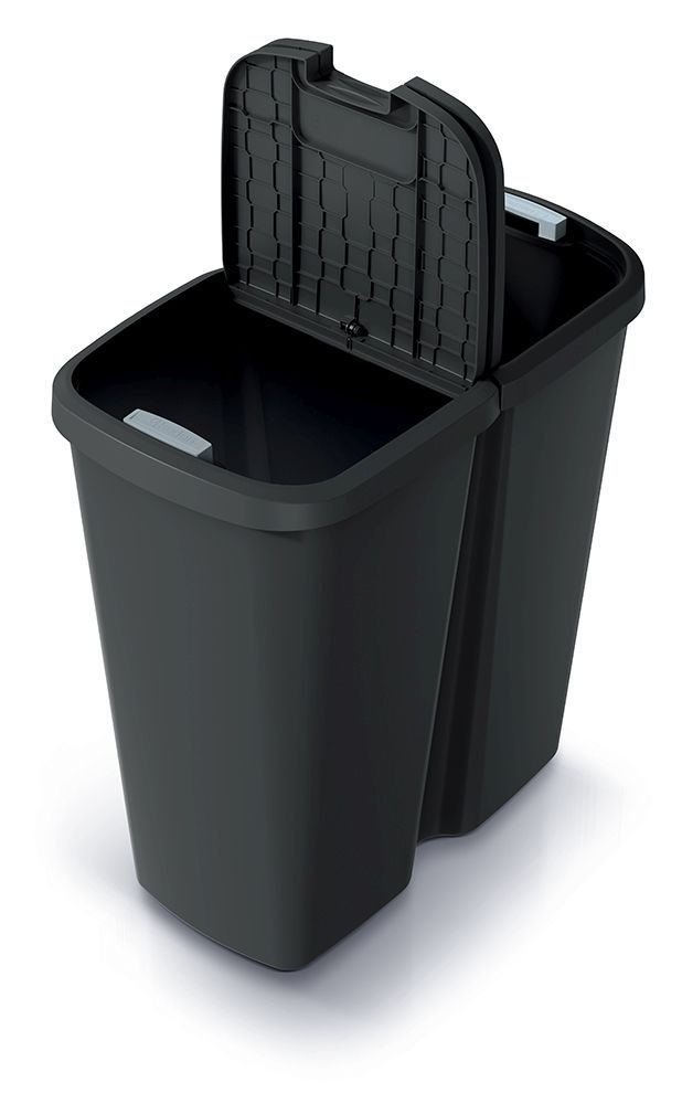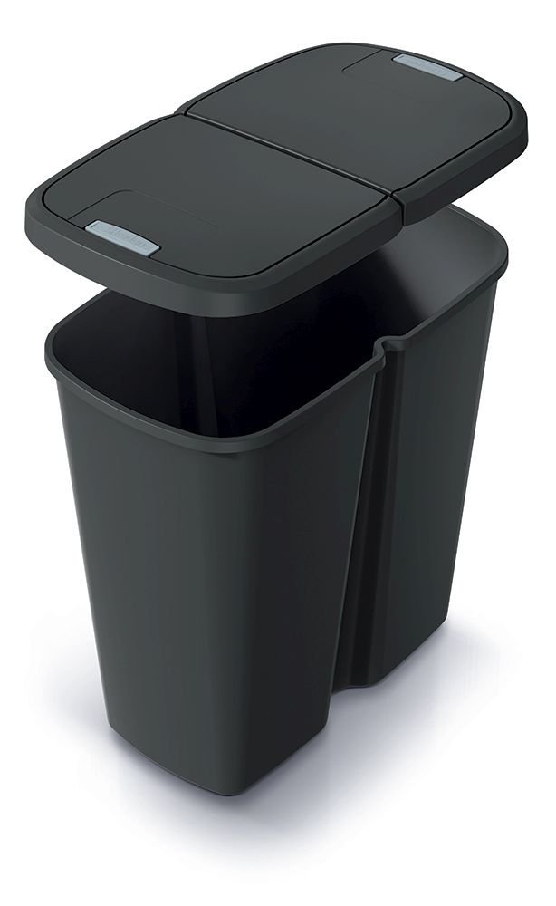 Odpadkový koš COMPACTA Q DUO - objem: 45 l, barva: recyklovaná černá s černým víkem