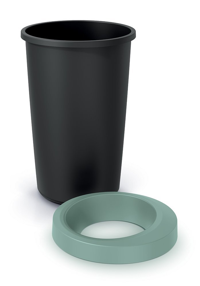 Odpadkový koš COMPACTA R DROP - objem: 35 l, barva: recykl. černá se světle zeleným víkem
