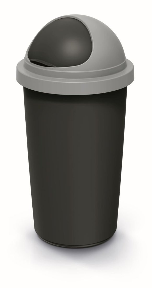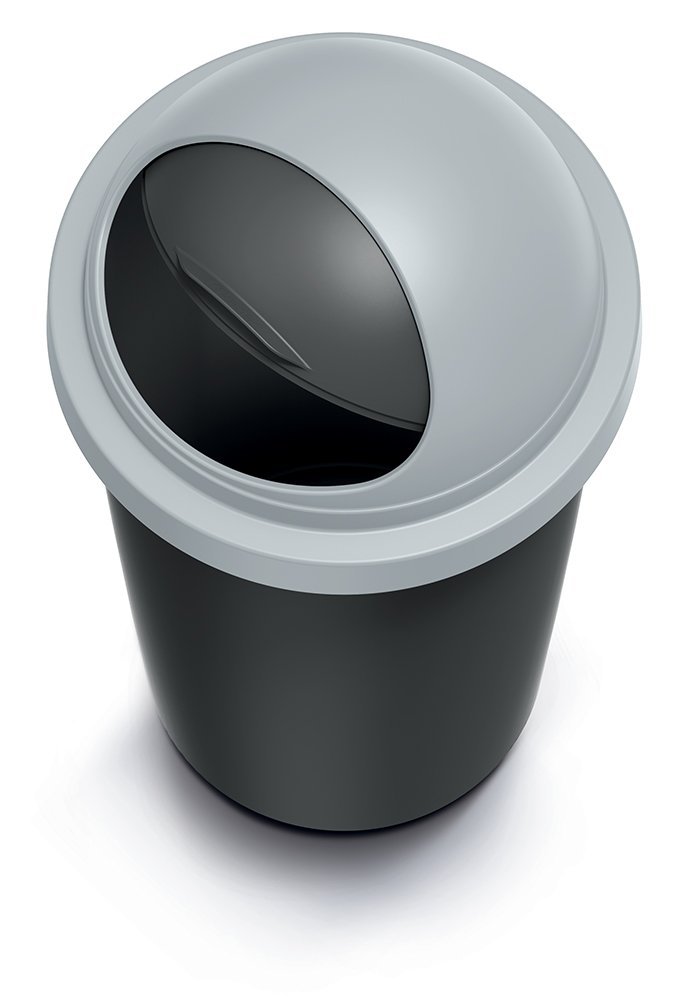 Odpadkový koš COMPACTA R Roller - objem: 30 l, barva: recykl. černá s světle šedým víkem