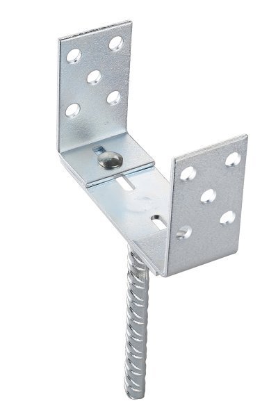nastavitelná patka pro sloupky v rozsahu šířky (průměru) 80 - 160 mm povrchová úprava - žárově pozinkováno trn pro uchycení 18 x 200 mm síla stěny patky 2 mm