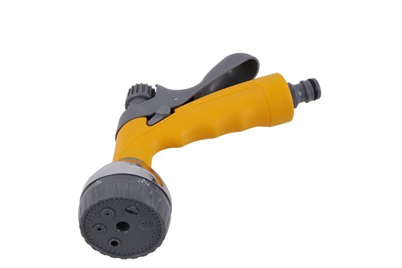 Pistol 6funkcí DELUX kovováVelmi kvalitní postřikovací pistole se šesti nastavitelnými polohami zalévání pro Vaši zahradu. Vyrobeno z kvalitního plastu a kovu. Barva žlutošedá. Min.70 kPa a max.550 kPa.