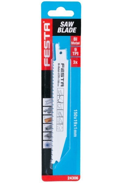 plátek pilový na kovy, plasty do elektrické pily ocasky Bi - Metal - materiál odolávající většímu tepelnému zatížení, delší životnost ostří plátku doporučená maximální tloušťka řezu - plechy 6 mm, kovové profily a trubky 100 mm rozměry : 150 x 19 x 1 mm, počet zubů na palec (TPI) - 9 Instruktážní video