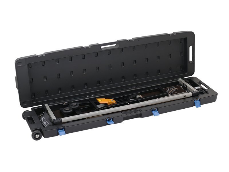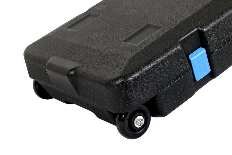 sada včetně příslušenství - nožní spínač, pojezdový stojan, stojan na lešení v praktickém ochranném kufru s pojezdovými koly