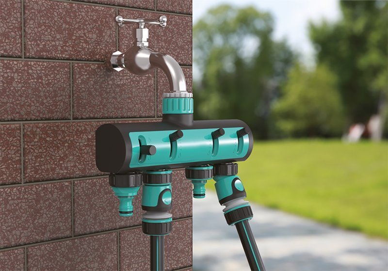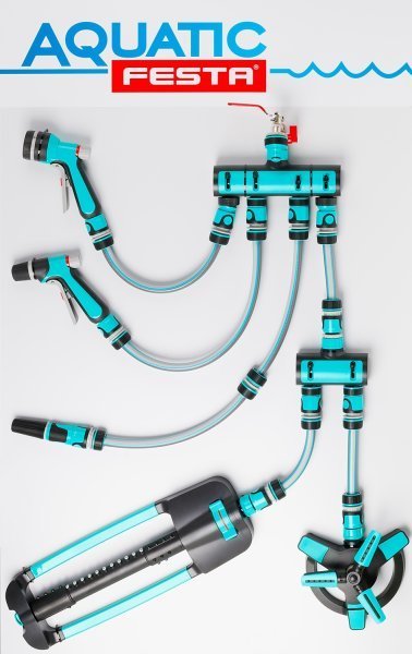 precizní úroveň zpracování a kombinace použitých materiálů řadí výrobky FESTA AQUTATIC mezi profesionální značky v zavlažování rozdělovač - čtyřcestný samostatné ovládání s plynulou regulací síly proudu pro jednotlivé výstupy napojení na kohout - šroubení 3/4 " nebo 1 ", výstupy na rychlospojku, STOP-rychlospojku nebo závit 3/4 " krajní výstupy jsou nastavitelné - otočné v rozsahu 360 ° kompatibilní s produkty ROSA