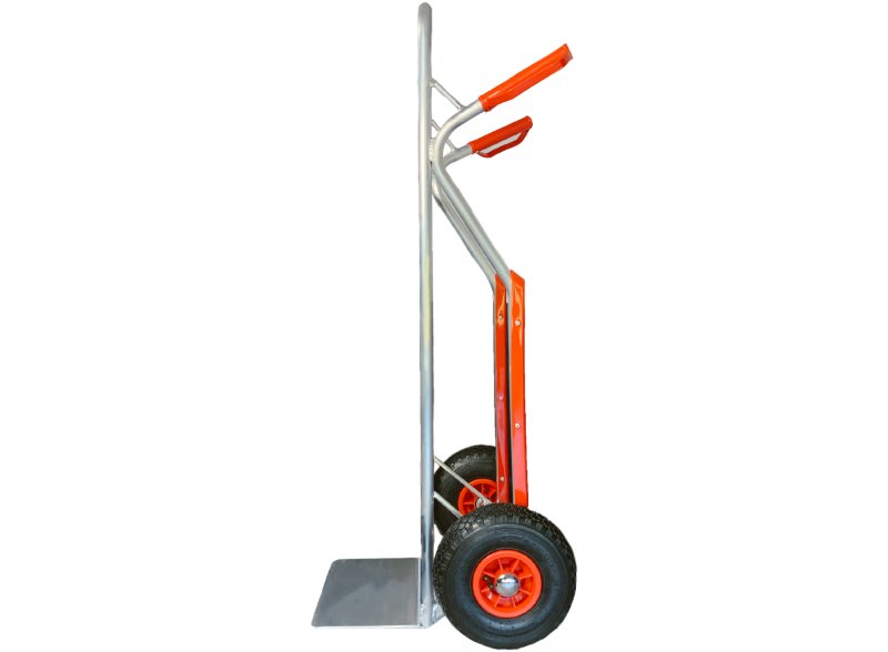 Značkový hliníkový, manipulačný rudl s maximálnou nosnosťou 200 kg a s nafukovacími kolesami je univerzálny vozík, ktorý vám bude užitočný pri preprave materiálu na rôznom povrchu, napr. po chodníku, tráve, nezpevnených plochách, skladoch, výrobných halách, atď.