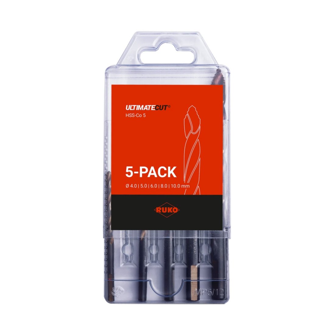 RUKO Sada vrtáků do kovu HSS-G Co 5 se špičkou Flowstep 5 dílů | 4-10 mm, blistr