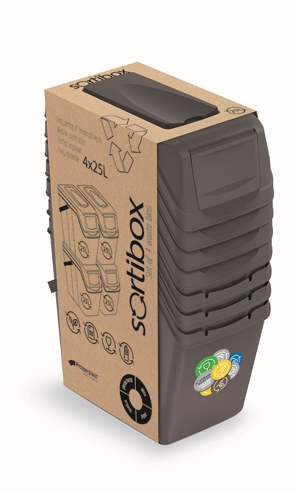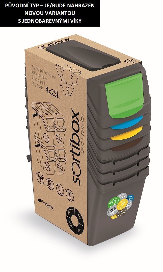 Sada 4 odpadkových košů SORTIBOX II - objem: 4x25 l, barva: šedý kámen