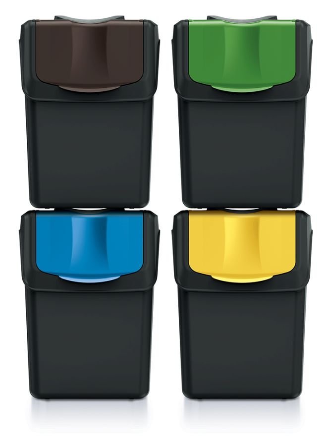 Sada 4 odpadkových košů SORTIBOX - objem: 4x20 l, barva: recyklovaná černá
