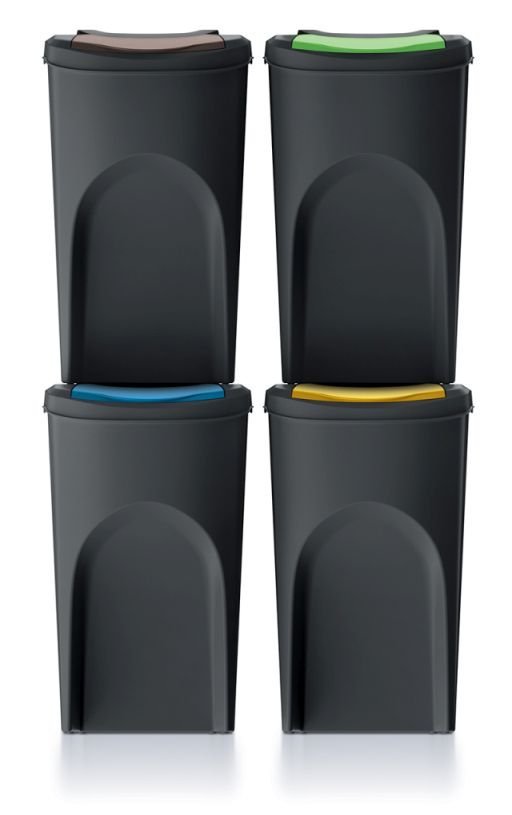 Sada 4 odpadkových košů SORTIBOX - objem: 4x35 l, barva: recyklovaná černá