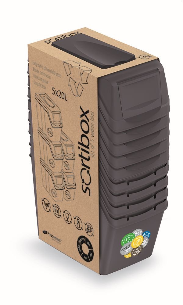 Sada 5 odpadkových košů SORTIBOX I - objem: 5x20 l, barva: antracit