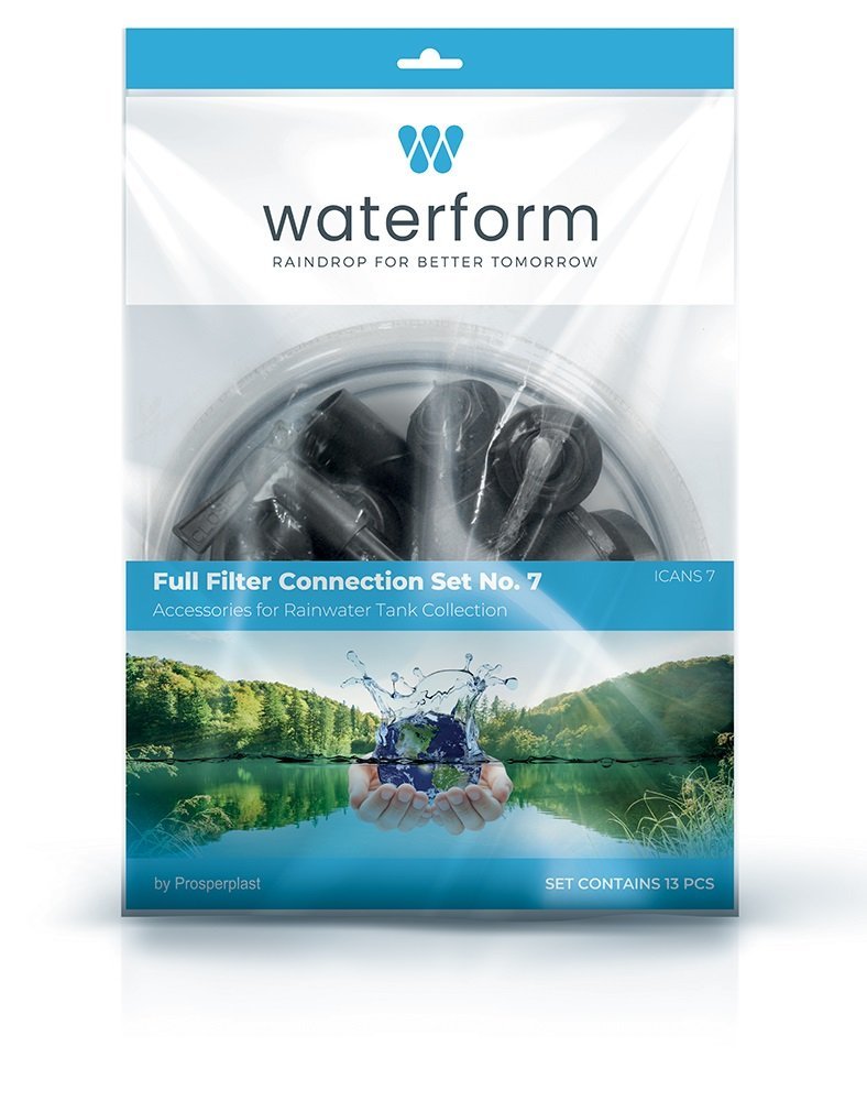 ICANS7 - Systém pro přívod a odvod zachycené dešťové vody v sudu. Sada se skládá z 13 dílů: vykružovadla; kohoutku; přípojky; rychlospojky; zahradní transparentní hadice; koncovky hadice; držáku koncovky; 3 redukcí; spojovací hadice; vnějšího filtru; lapače vody. Sada je rozšířena o vnější filtr hrubých nečistot dešťové vody. Kompletní a univerzální sada, jednoduchý design zajišťuje rychlou instalaci.