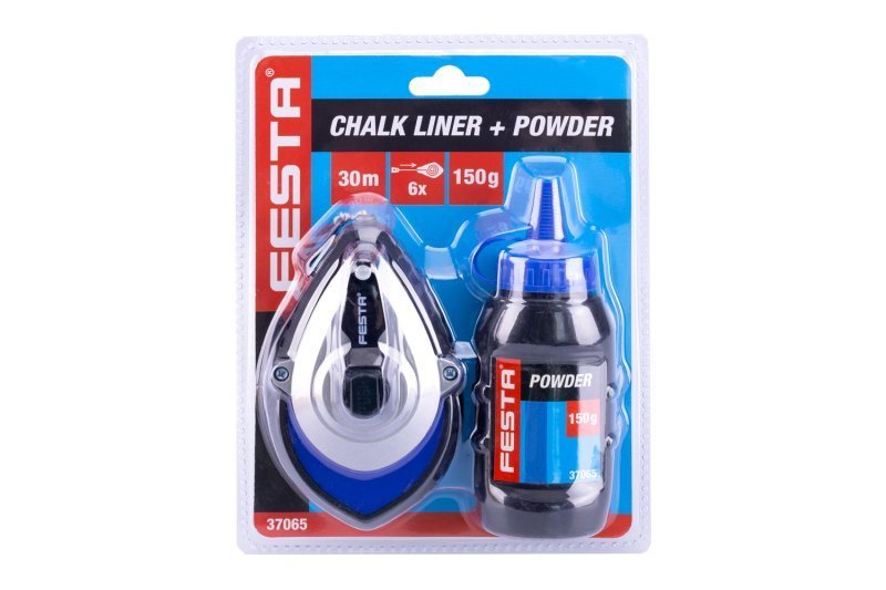 Navíječ 30M+pudr,rychlonavíjení FESTASada navíječ + pudr FESTA, délka provazu je 30 m - rychlonavíjení, pudr 120 g. Kovový navíječ je chráněn v gumovém obalu. Navíjení je převodové, rychlonavíjecí. Opisovací provázek se napne. Lehkým cvrnknutím přenese provázek barvu na opisovanou plochu. Hmotnost 0,395 kg.