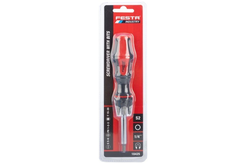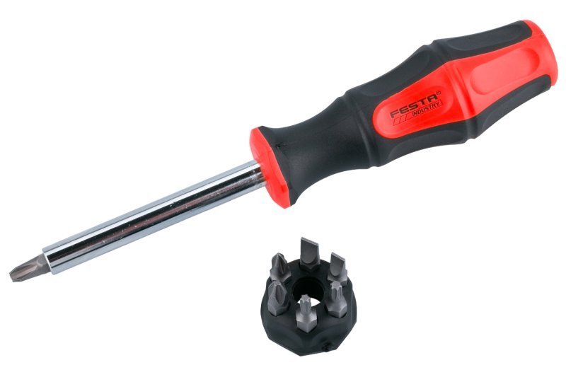 Šroubovák + 5 nástavců. Sada obsahuje ploché i PH nástavce. Ergonomicky tvarovaná rukojeť. Pro hobby použití.