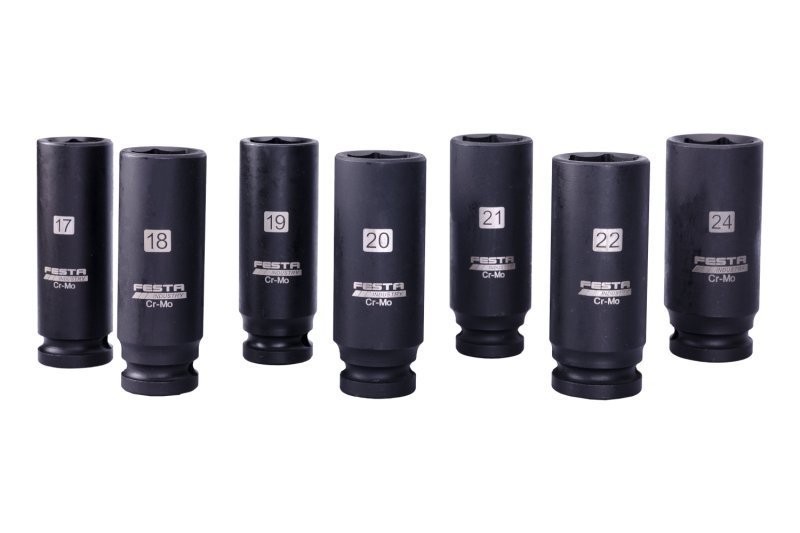 Sada úderových hlavic FESTA INDUSTRY prodloužených 1/2" Cr-Mo