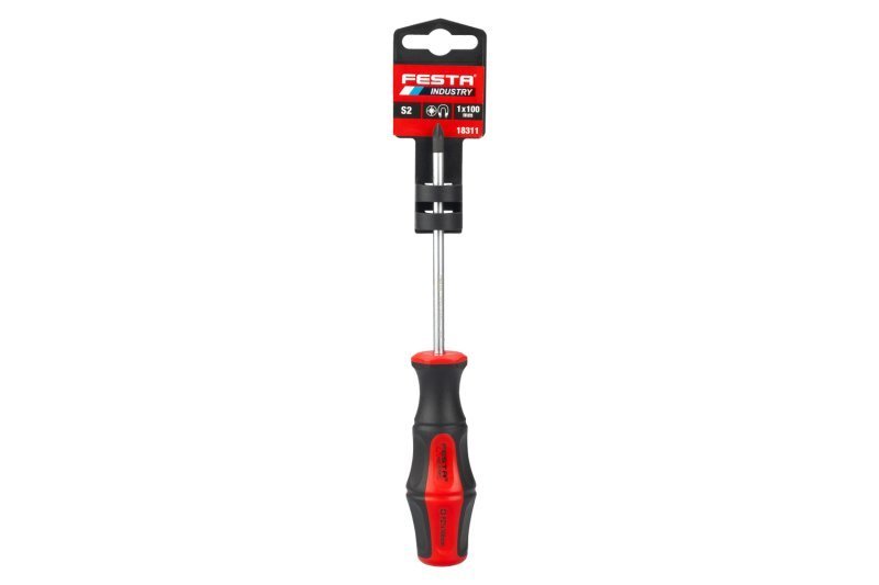 Šroubovák má kovový dřík vyroben z velmi kvalitní chromvanadiové oceli, kalený hrot je magnetický, povrchově chráněný tvrdochromem, kombinace polypropylenu a pryže na ergonomicky tvarované rukojeti zaručuje výborné antiskluzové vlastnosti a dobrou odolnost vůči mazadlům a chemikáliím.