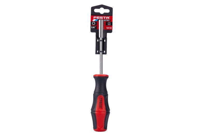 nástrčný šroubovák se dříkem z kvalitní CrV oceli zakončeným šestihranem 1/4" na bity magnet uvnitř dříku pro lepší uchycení bitu a spojovacího materiálu kombinace polypropylenu a pryže na ergonomicky tvarované rukojeti zaručuje výborné antiskluzové vlastnosti a dobrou odolnost vůči mazadlům a chemikáliím