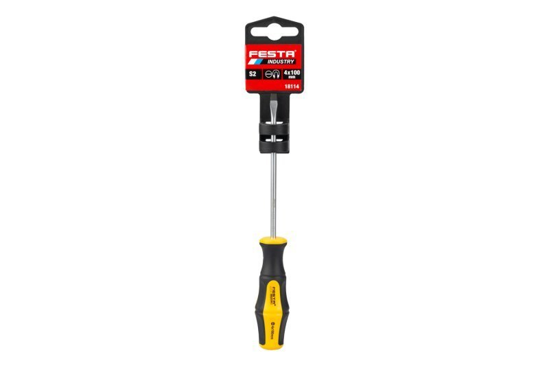 Šroubovák má kovový dřík vyroben z velmi kvalitní chromvanadiové oceli, kalený hrot je magnetický, povrchově chráněný tvrdochromem, kombinace polypropylenu a pryže na ergonomicky tvarované rukojeti zaručuje výborné antiskluzové vlastnosti a dobrou odolnost vůči mazadlům a chemikáliím.