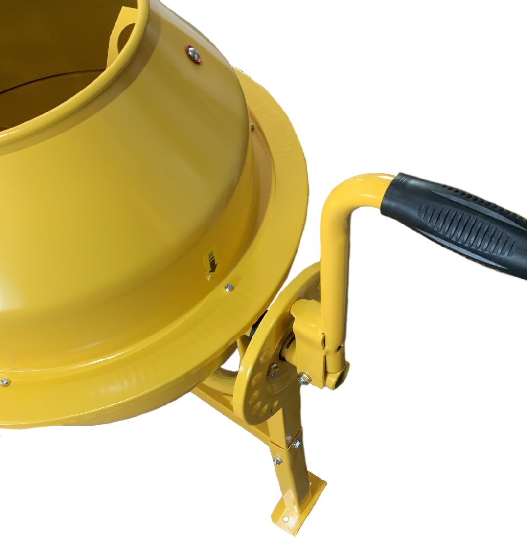 Kvalitná stavebná miešačka na betón s vyklápěcími ručkami, pre jednoduchú a dobrú kontrolu bubnu.