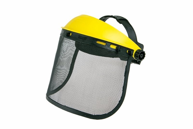 Ochranný štít s mřížkou, zrak je chráněn jemnou mřížkou, výhodou je, že nedochází k mlžení a lépe se dýchá, jednoduše nastavitelná velikost díky otočnému kolečku, potítko vpředu, CE EN 166. Pro práci s motorovou pilou, křovinořezy, řezání dřeva...