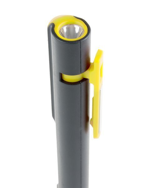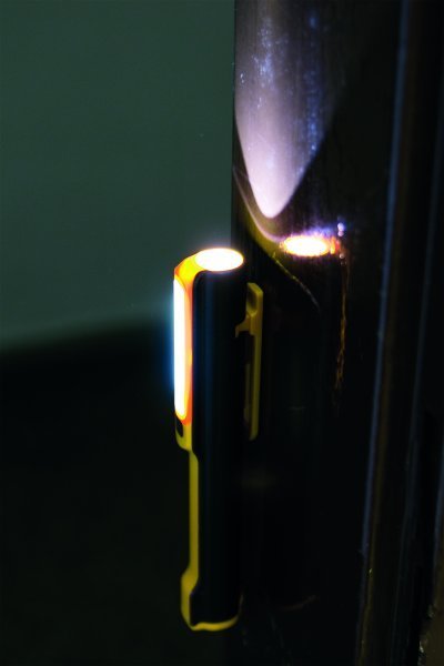 LED svítilna, 200mm, s čelním svícením 40 lumen a bočním 120 lumen, magnety k připevnění, otočný klip. 3xAAA.