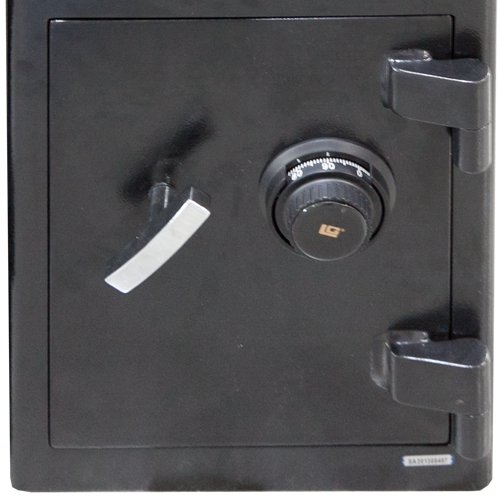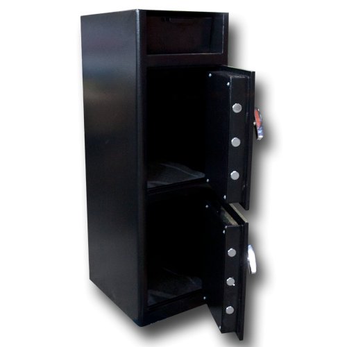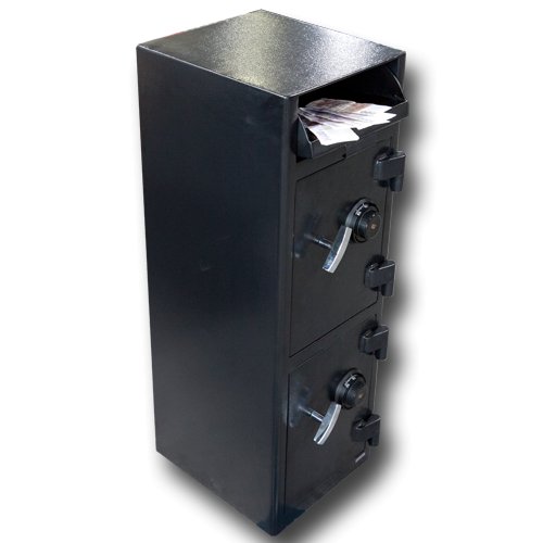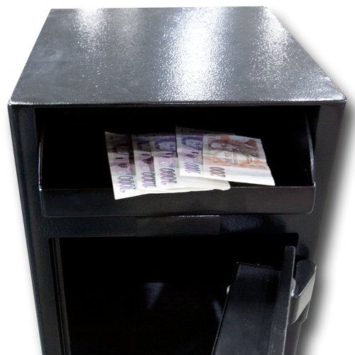 Trezor je dvojdielny, vrchný aj spodný uzamykateľné dvere sú vybavené kódovými zámkami, vrchná uzamykateľná časť trezoru je prepojená s vhozom.