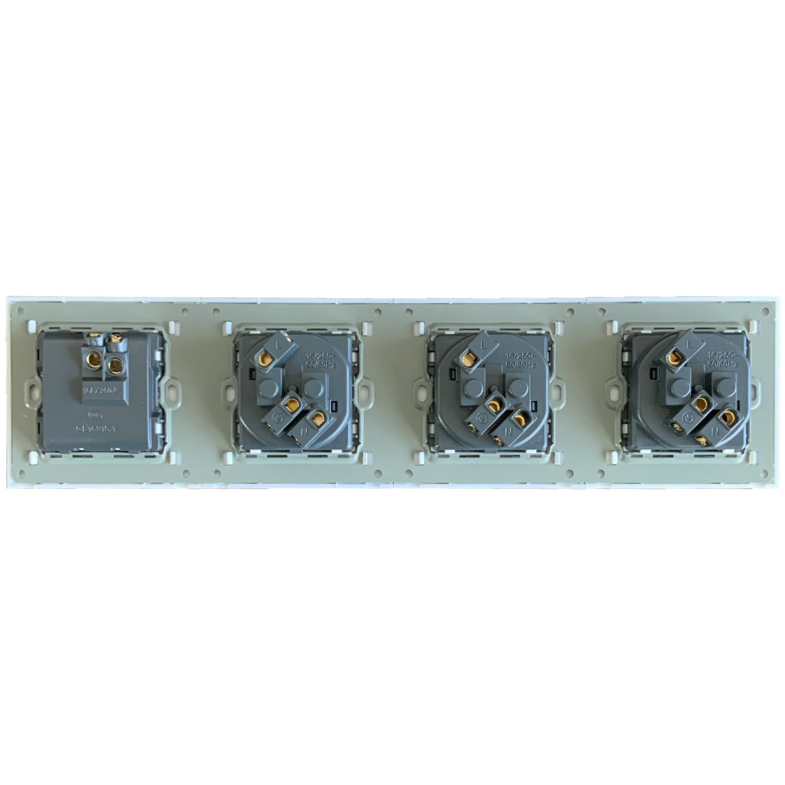 Sklenený rámik s tromi plastovými zásuvkami a jedným vypínačom - klasické