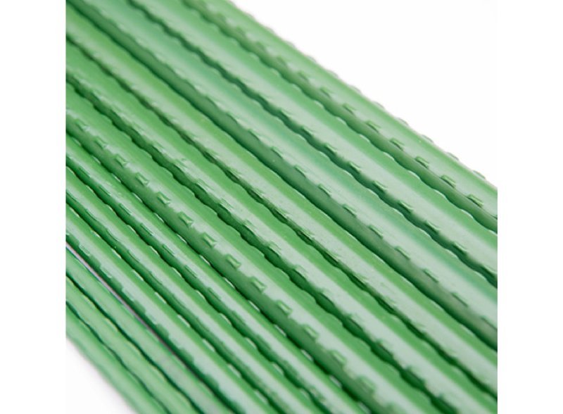 Oceľová tyč potiahnutá vrstvou zeleného PE je odolná voči poveternostným podmienkam.