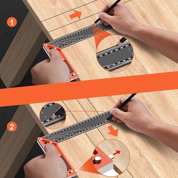profesionální multifunkční truhlářský úhelník stupnice a speciální otvory - naznačené úhly pro široký rozsah použití, zaměření, značení a práce se dřevem, kovy, plasty apod. speciální doplňkové komponenty - výsuvná opěra a hrot pro speciální značení - kružnic, podélných čar a podobně vhodný pro profesionály i náročné kutily a modeláře Instruktážní video