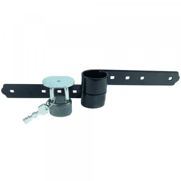 Uzamykatelná závora, kvalitní kovové do sebe zapadající části, zámek s okem uzpůsobeným pro zapadnutí do otvoru vzniklém překrytím do sebe zapadajícím částem závory, brání také proti přístupu nástrojů pro případné přeříznutí přestřižení oka zámku.
