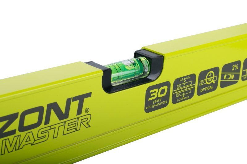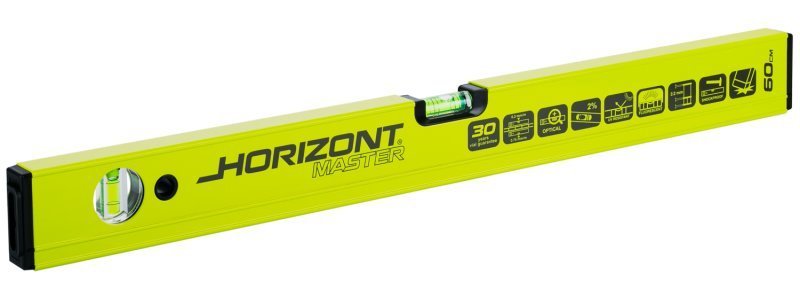 Horizont EXACTA 2 libely, PŘESNOST 0,3MM/M = 0,017° (V ZÁKLADNÍ POLOZE), zesílený ALU profil 2,2mm, frézovaná základna, kapalina v libelách UV stabilizovaná a fluorescenční, otická horizontální libela - snadné a přesnější měření, dvojité kroužky v libele umožňují nastavit sklon 2%, vodováha je odolná proti provozním nárazům, KAŽDÝ KUS ELEKTRONICKY TESTOVÁN.