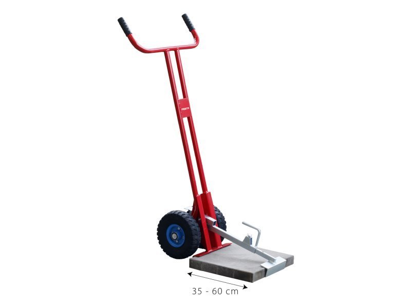 celokovová robustní konstrukce, dlouhý rám s masivními řidítky - snadná manipulace i s těžkou betonovou dlažbou formátu 60 x 60 cm