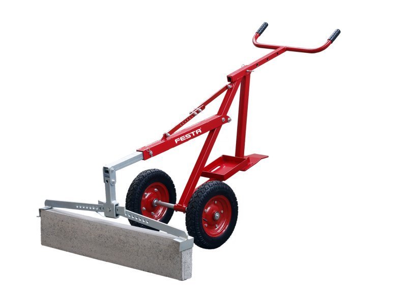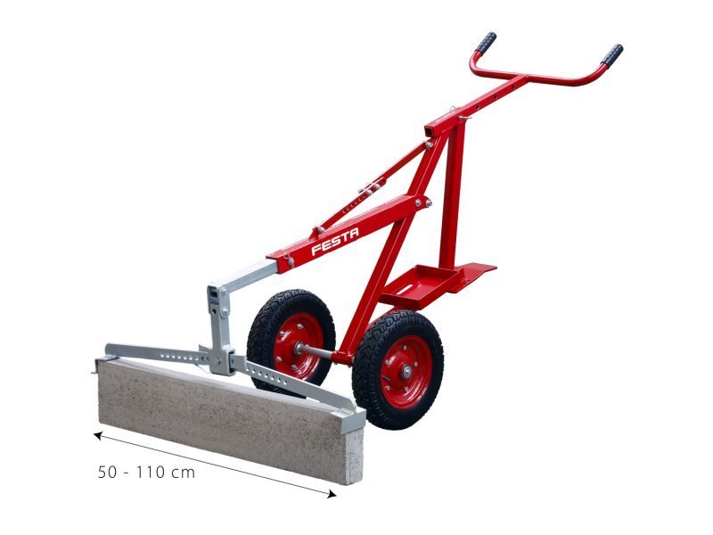 konstrukce vozíku s dlouhpu pákou a velkými řidítky umožňuje lehkou manipulaci 1 osoby s těžkými obrubníky