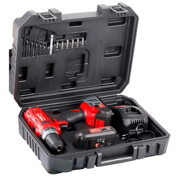 Li-ion technologie použitá v bateriích FESTA Power x tools nabízí možnost dobíjet baterie kdykoliv - bez snižování jejich kapacity, u Li-ion baterií také dochází k jen velmi pomalému samovybíjení pro běžnou práci je baterie s kapacitou 2.0 Ah (28080) dostačující - nabíjecí čas 40 min., pro práci s předpokladem větší zátěže, doporučujeme použít baterii s kapacitou 4.0 Ah (28081) - nabíjecí čas 90 min v praktickém setu v kufru je kromě AKU vrtačky také - 2 x baterie Li-ion 2.0 Ah, rychlonabíječka 2.4 A, unašeč 1/4", bity a vrtáky HSS
