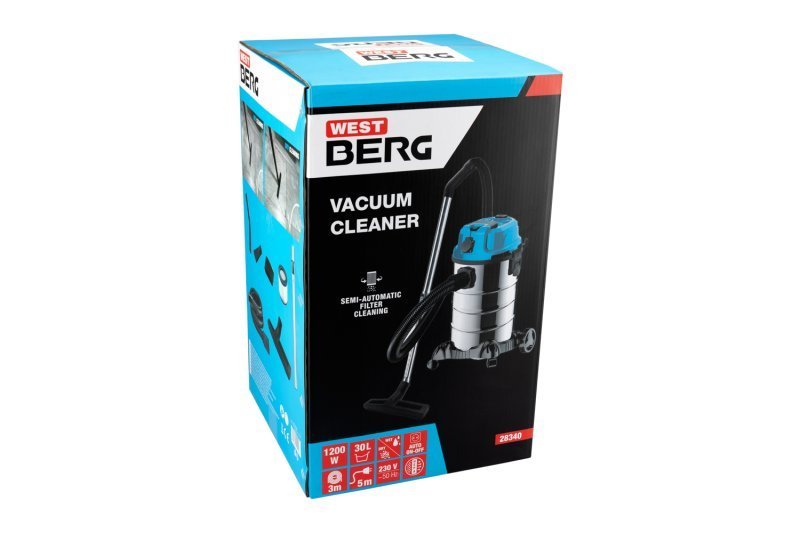 sací hadice 3 m, teleskopická pochromované trubice, kombinovaná podlahová hubice, štěrbinová hubice, HEPA filtr (lze objednat samostatně 28342), filtrační sáček pro opakované použití, hadicová redukce