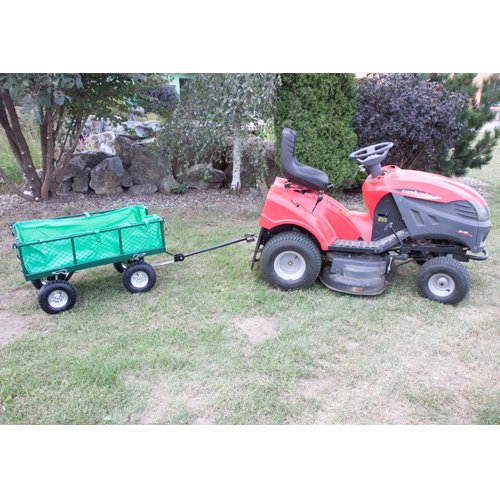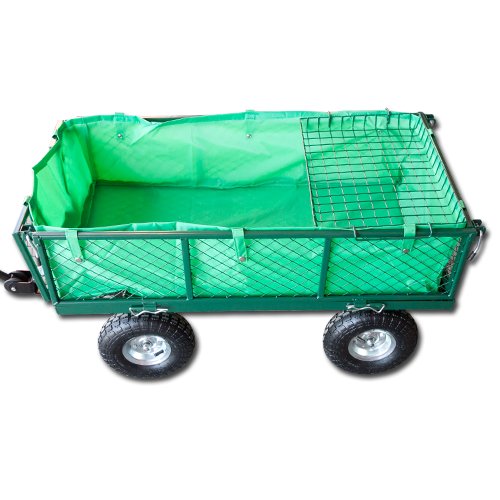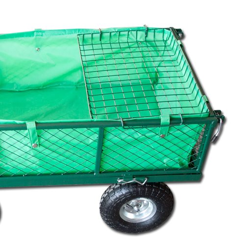 Ručný záhradný vozík s výklopnými bokmi a plachtou má stabilnú kovovú konštrukciu s pevnými pneumatikami a dvojitou nápravou. Korbička má objem 85 litrov a nosnosť až 300 kg. Vďaka stabilnej rukoväti je prepravný vozík ľahko ovládateľný a je vhodný na prácu ako v záhradníctve, tak aj na stavbe. Vozík je možné pripojiť aj za záhradný traktor.