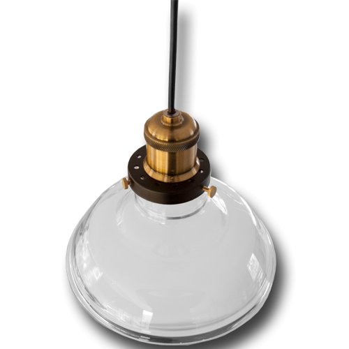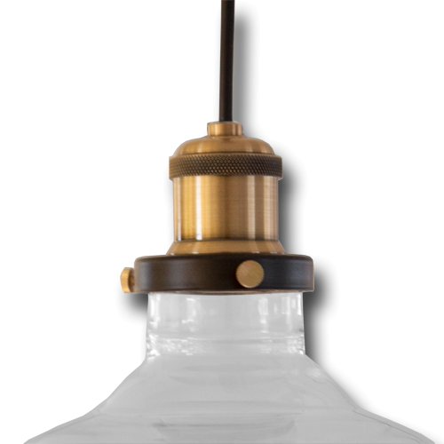 Tienidlo svetla je vyrobené z číreho skla, ktoré zavesíte na mosadzný držiak. Elektrický kábel je izolovaný čiernou bužírkou a zakončený stropnou krytkou z matného čierneho plechu.