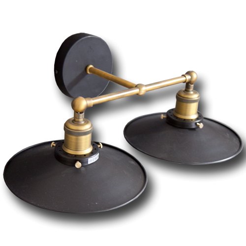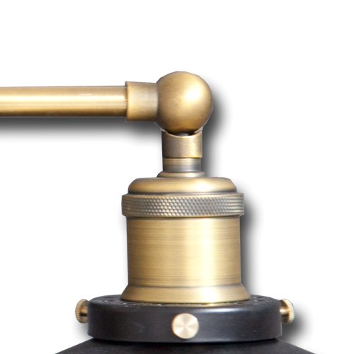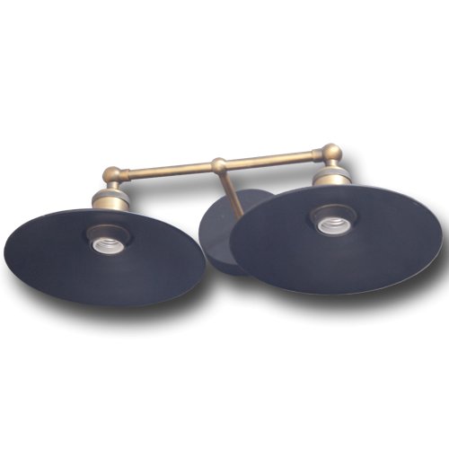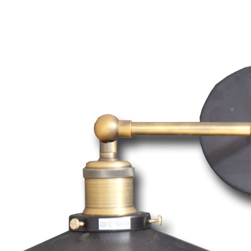 Tienidlá svetiel sú vyrobené z matného čierneho plechu, ktoré sú na stene pripevnené mosadzným držiakom zakončeným krytom z rovnakého materiálu ako tienidlá.