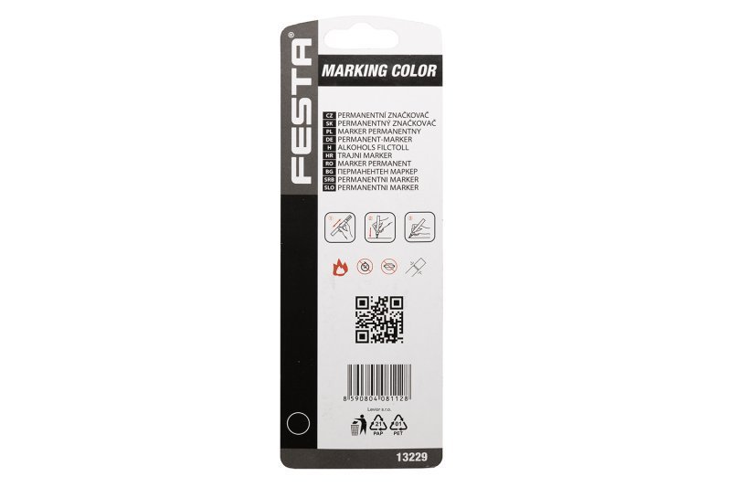 Speciální značkovací barva v hliníkovém pouzdře, síla hrotu 4 mm - černý, popisy železných konstrukcí, skla, plastů, černých strečových folií a tmavých podkladů, max.80°C.